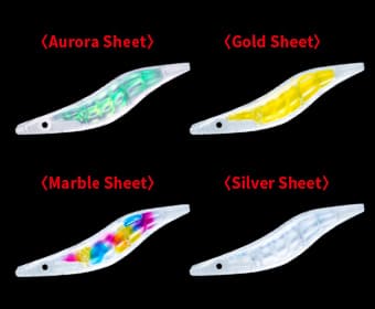 Las láminas interiores le dan una infinidad de brillos, que la harán más apetecible para cualquier cefalópodo, tenemos diferentes tipos de láminas las cuales nos ofrecen un abanico de tonalidades y destellos: