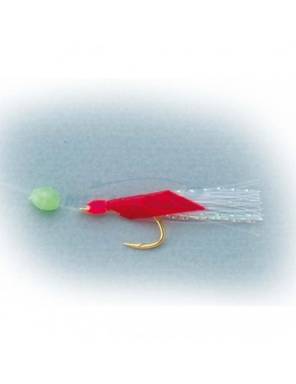 Pluma de anzuelos con pelo brillante y piel roja, sumamente efectivas para la pesca de caballas y jureles ya sea desde puerto utilizando flotador o bien en vertical desde embarcación.