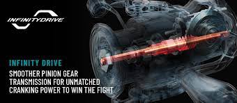 El infinity drive es una nueva construcción que elimina la resistencia al deslizamiento y realiza el devanado ligero en condiciones de carga o sin carga. Gracias a esta tecnología se consigue una construcción sin contacto donde el interior del piñón no toca el eje principal.